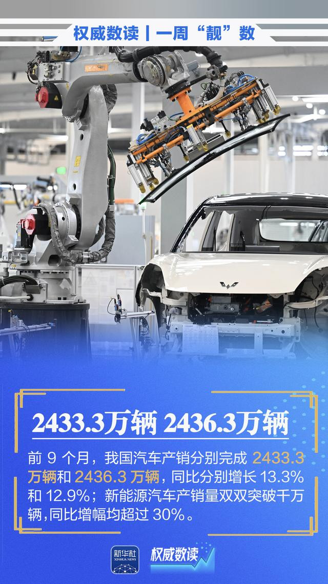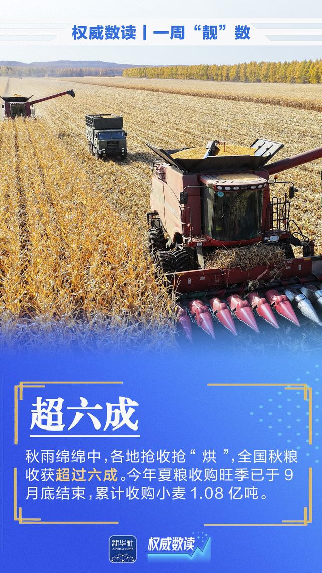 全国秋粮收获超过六成;新能源汽车产销量双双突破千万辆;我国制造业增加值每年均超过30万亿元……本周这组数据,最值得关注!