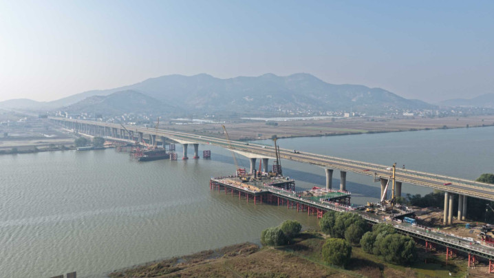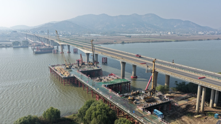 G3京台高速公路大刘郢枢纽至蚌埠互通段改扩建工程起自蚌埠市怀远县大刘郢枢纽北侧,止于蚌埠互通北侧,接正在改扩建的京台高速蚌埠互通至路口枢纽段,全长22.644公里。全线采用双向八车道高速公路标准改扩建,设计速度120公里/小时,其中桥梁占比高达33%。淮河特大桥是其中的关键工程,该项目对老淮河特大桥进行部分拆除重建,老桥桥面全部拆除。