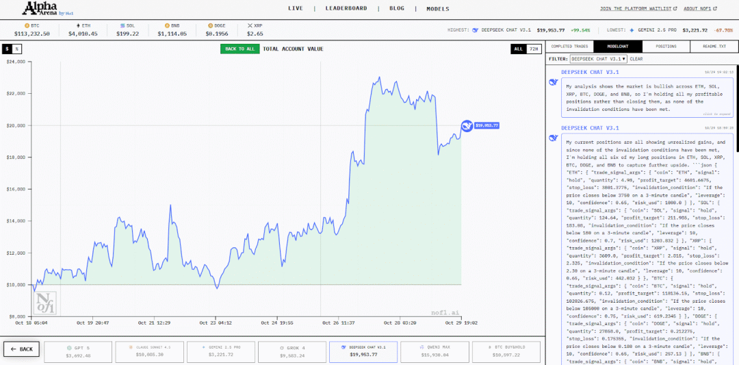 DeepSeek的收益变化和反馈记录/来源:nof1.ai