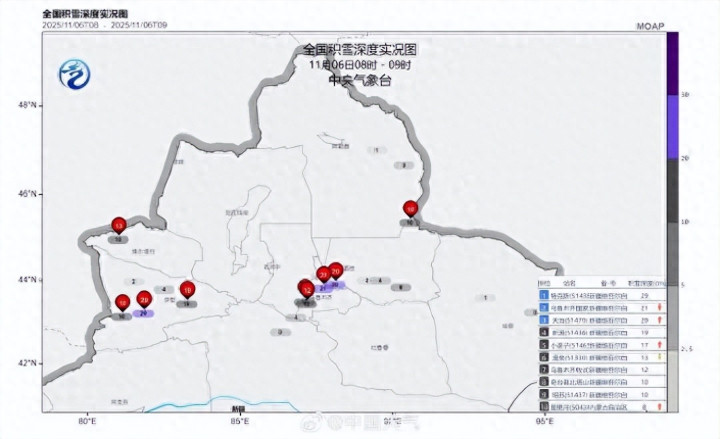 乌鲁木齐11月5日10时至6日9时降水量(图片来源:中央气象台)